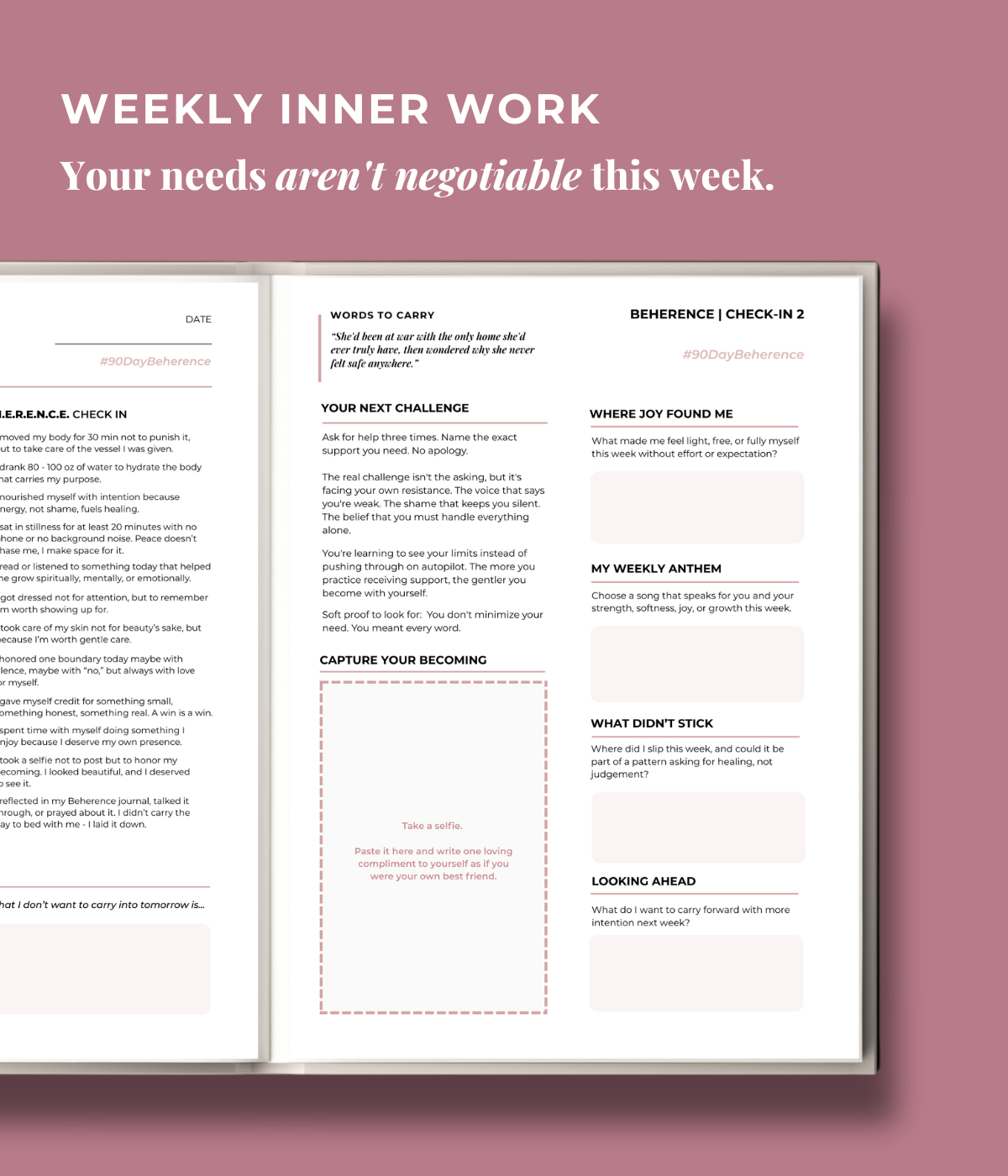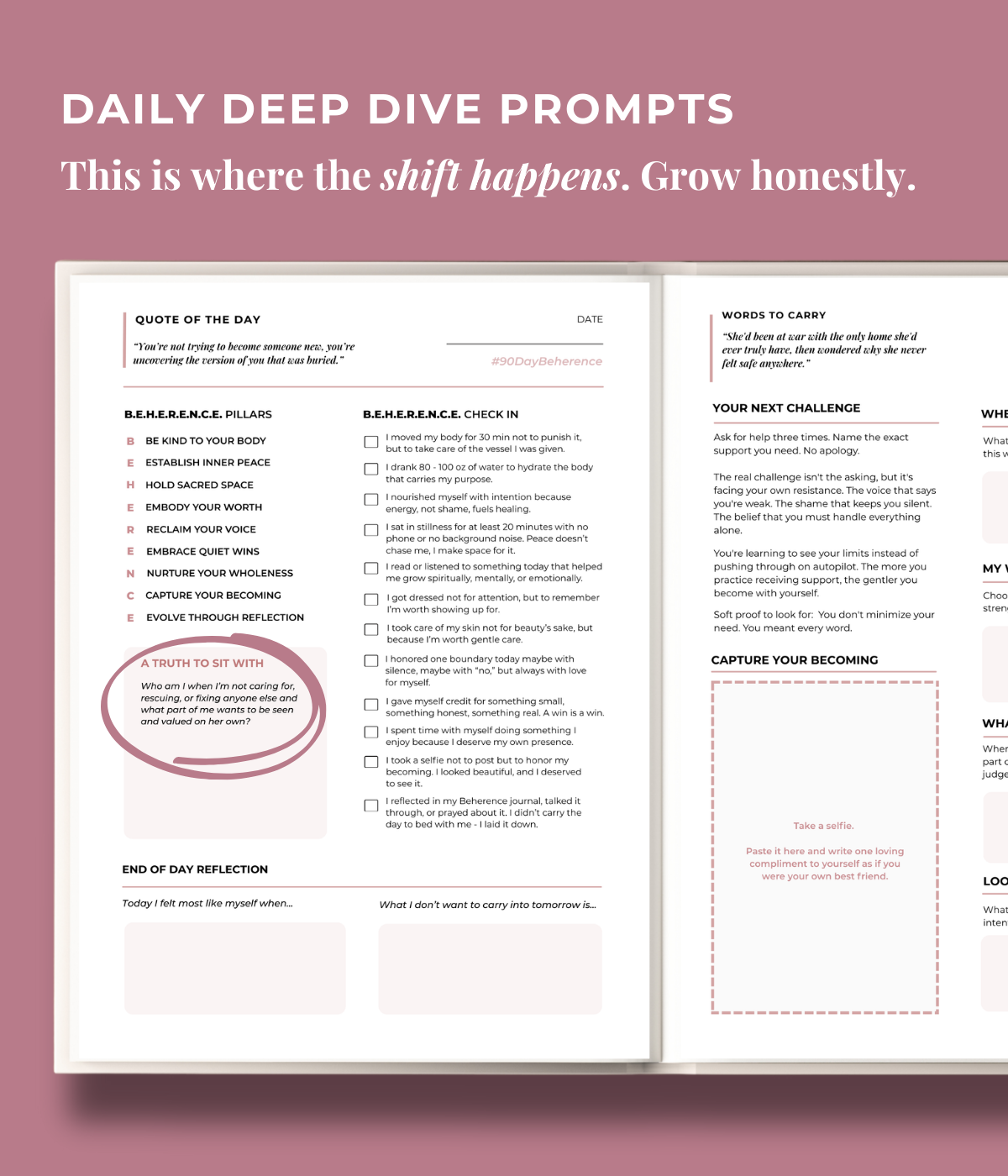 Some days you'll write pages. Other days, you'll just check a box. Some days you'll slip back into old patterns, and that's okay. Beherence meets you where you are, with daily reminders to choose yourself in small but powerful ways.